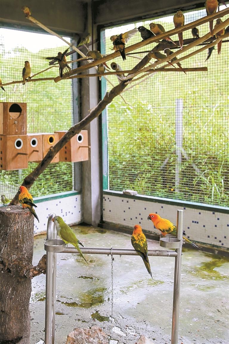 深圳市野生动物救护中心的太阳锥尾鹦鹉。 深圳晚报记者 陆颖 摄