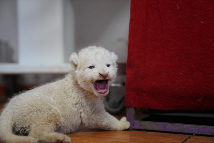 据了解,这些白色小狮子属于非洲狮的变异物种,十分珍贵,由于母狮弃养,动物园便采用人工育幼。眼下正处在生长的关键期,狮宝宝尚不能在室外运动,预计国庆假期可以与游客见面。