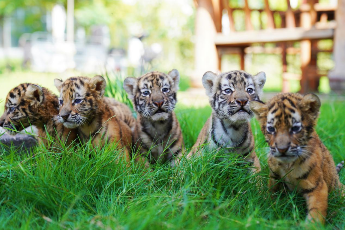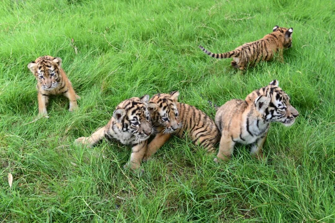 5只东北虎宝宝在草地上玩耍 杨帆 摄